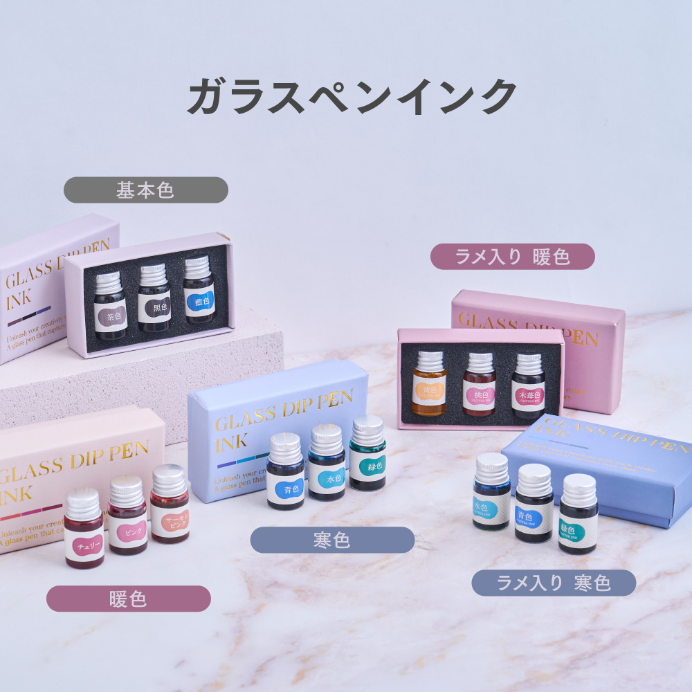 ピンク・ブルー・イエローなど色とりどりのガラスペンに加え、初めての方でもすぐ始められる“スタートキット”もご用意🪶