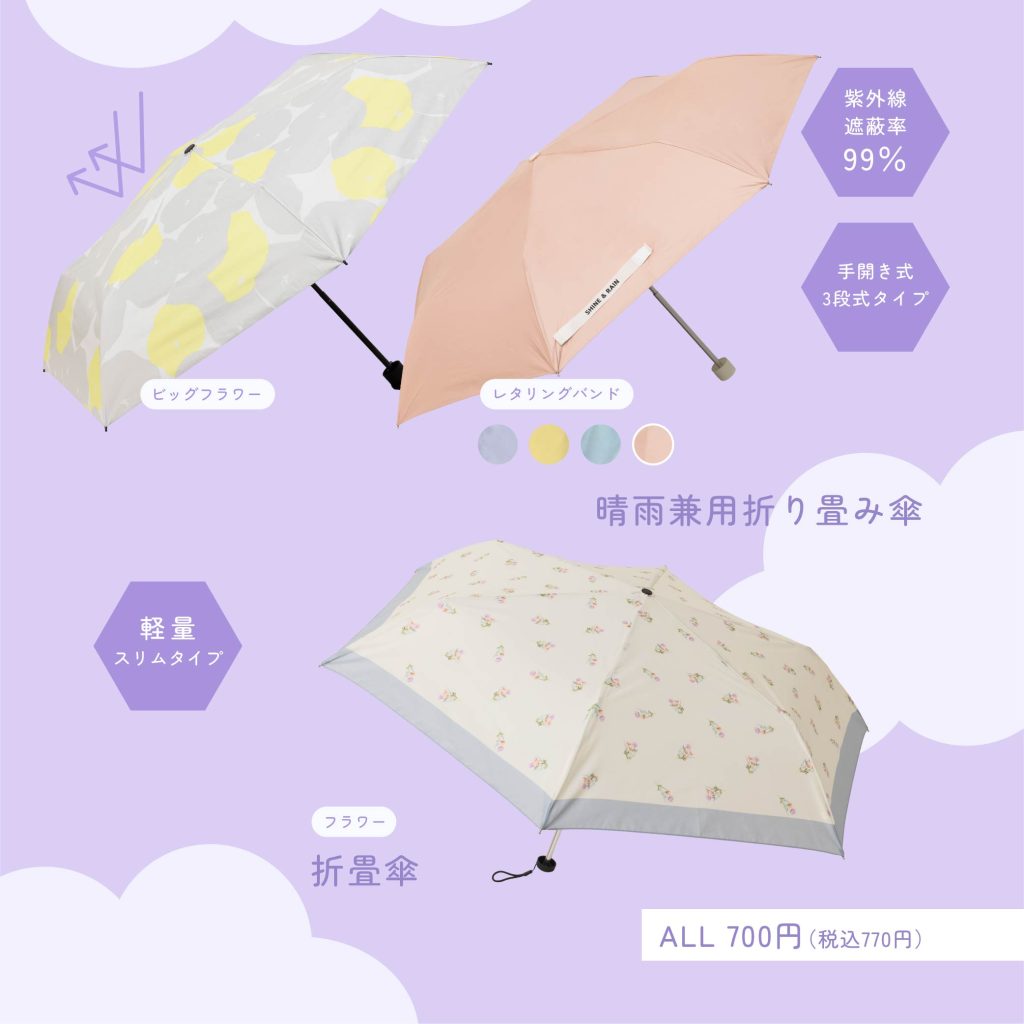 急な雨にも強い日差しにも対応できる、晴雨兼用タイプの折りたたみ傘&長傘が入荷しました✨