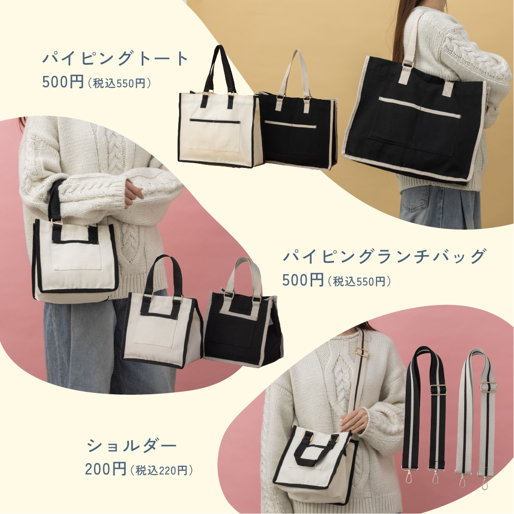 シンプルな配色に、さりげないパイピングが映えるバッグシリーズ🖤🤍