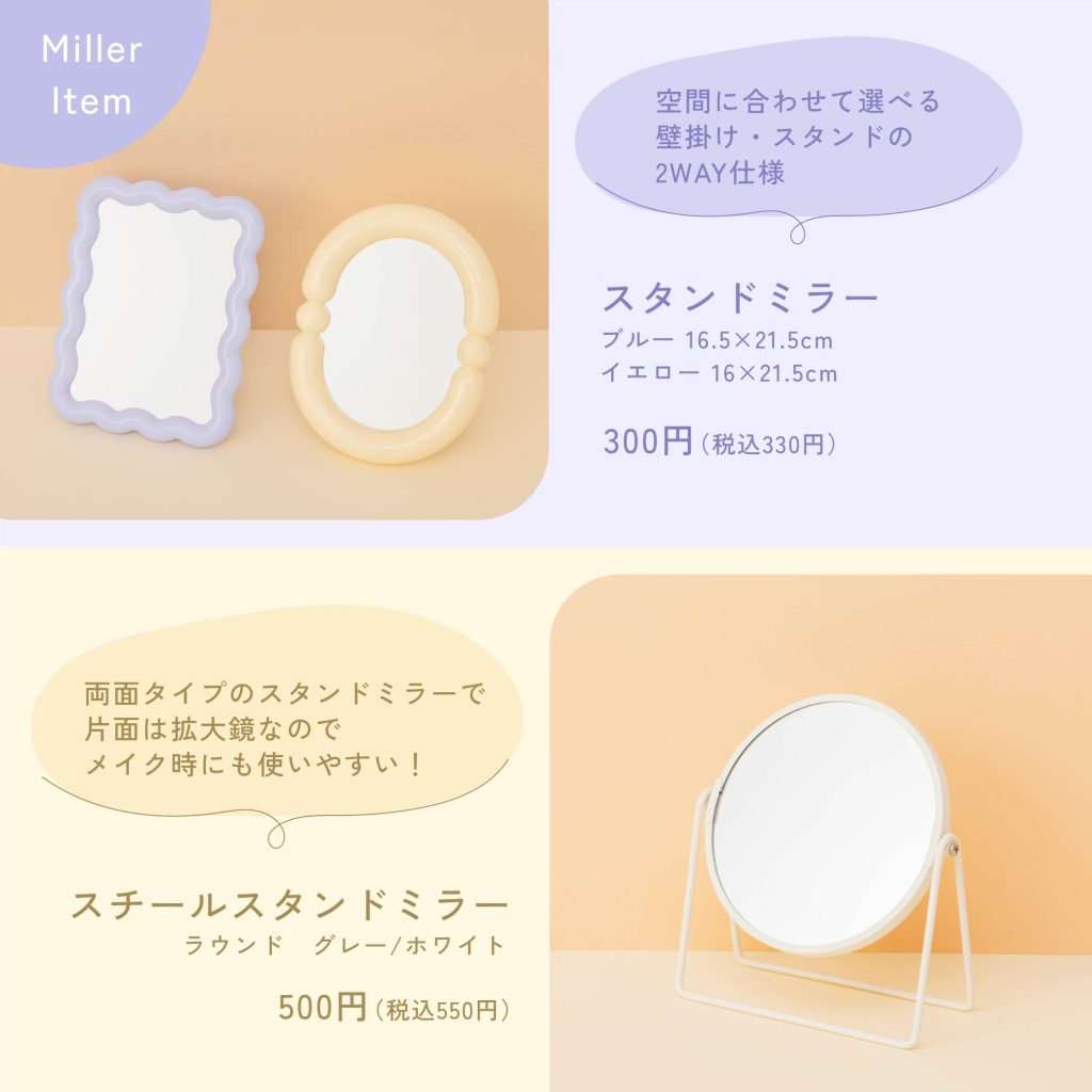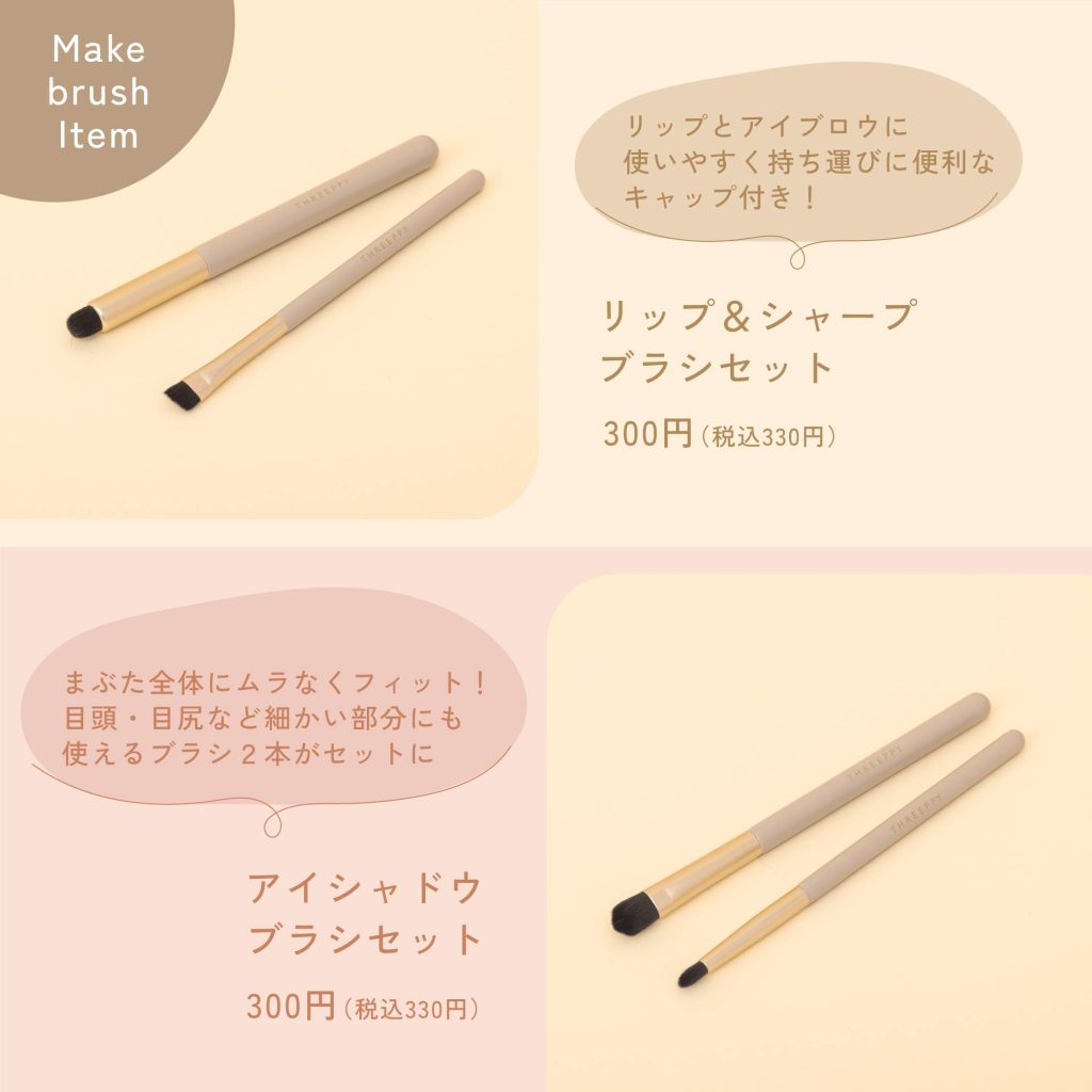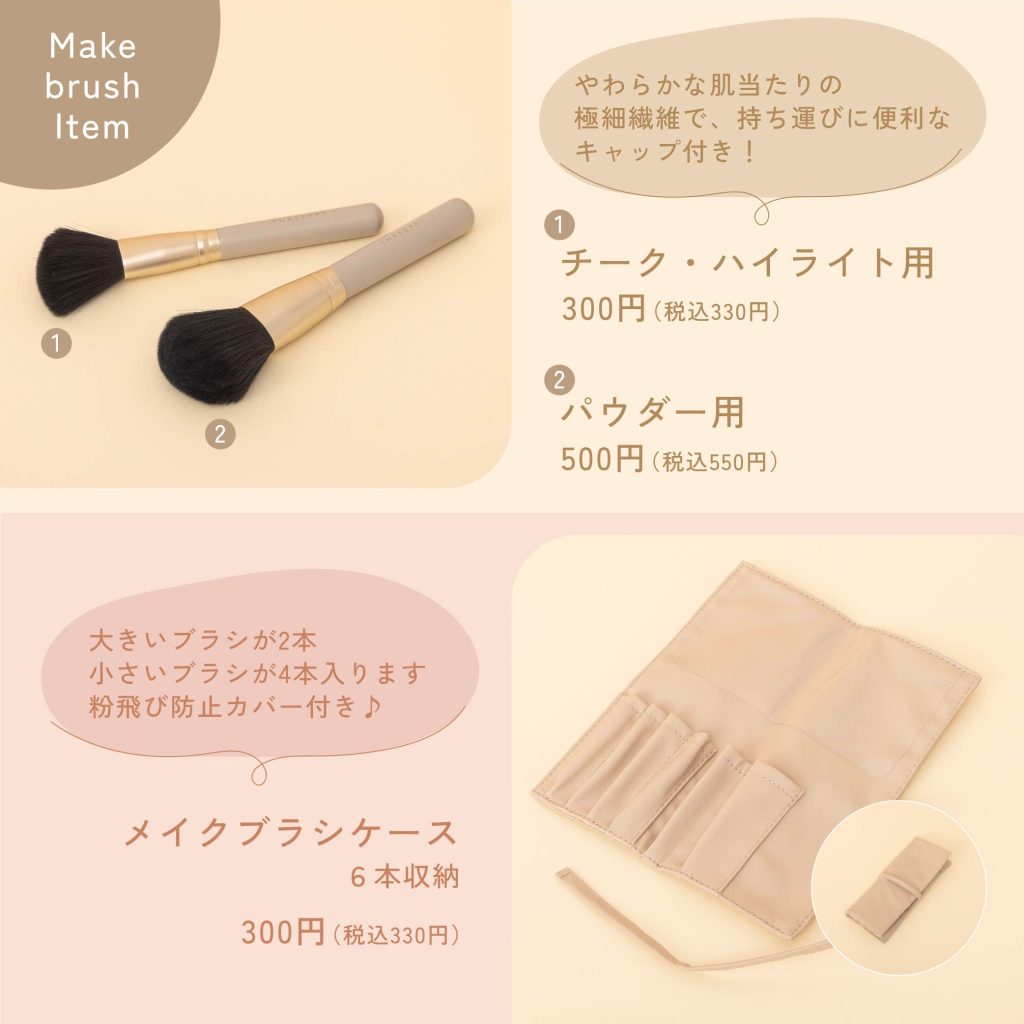 用途に合わせて選べるメイクブラシと、使いやすいスタンドミラーを揃えました。