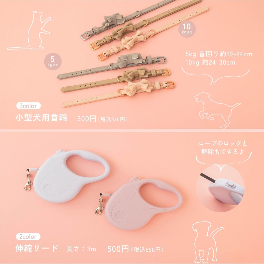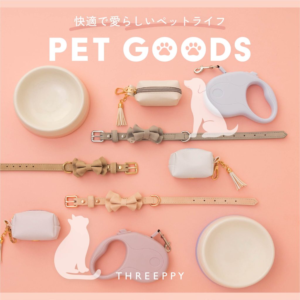 お散歩に便利な伸縮リードやマナー袋ケース、首元のリボンが可愛い小型犬用首輪など、THREEPPYこだわりのペットグッズが登場しました🐶🐱
